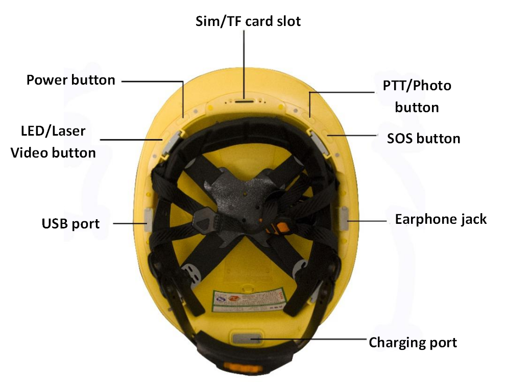 Buttons: power button, (video button, lighting, laser light)